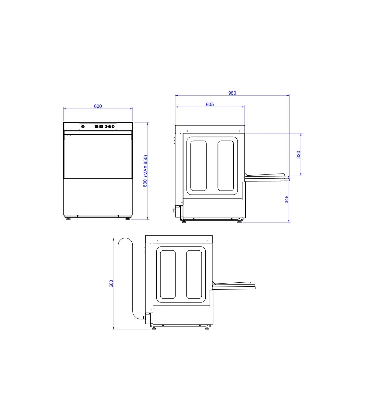 Lavavajillas cesta 50x50 trifásico con bomba de desagüe Edenox AFG-720-B