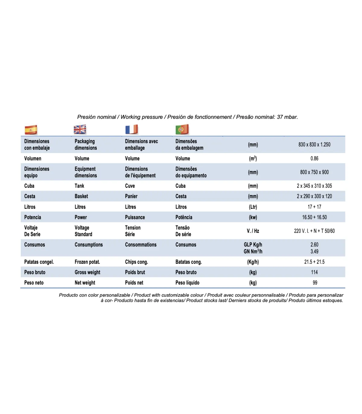 • Gama de freidoras diseñada para ofrecer las máximas combinaciones de trabajo con las características de: diseño, potencia, funcionalidad y accesibilidad.