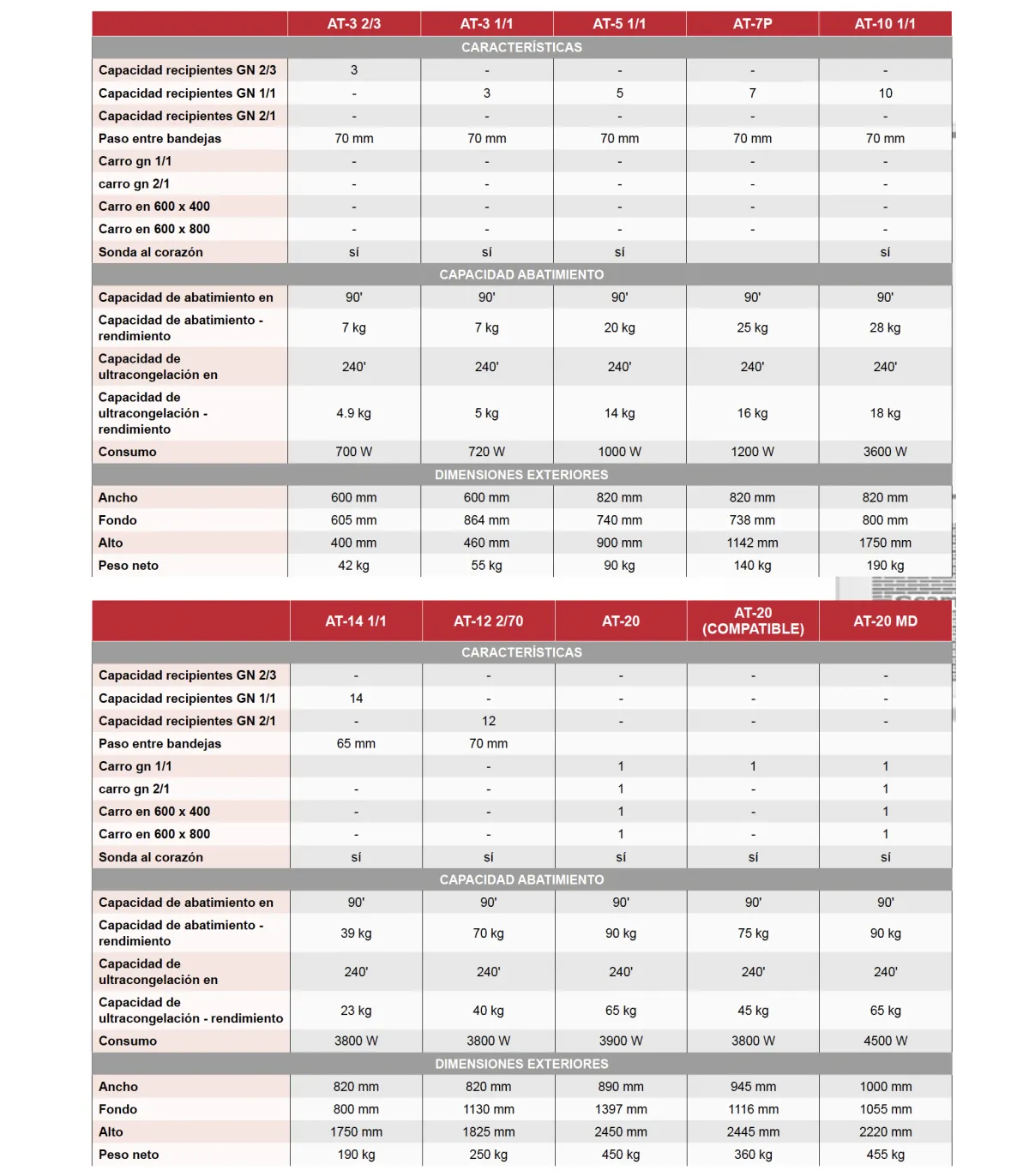 Capacidad abatimiento: 90 ºC a 3 ºC / 90 ' / 39 Kg