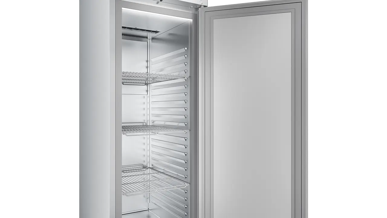 La higiene es la máxima prioridad en cualquier lugar donde se guarden alimentos. Precisamente por este motivo, el panel interior de inserción profunda Gastronorm 2/1 se fabrica en acero inoxidable higiénico y no presenta partes funcionales difíciles de limpiar. Los paneles laterales de acero inoxidable sin junturas de la superficie exterior, con capa de aislamiento, son también increíblemente fáciles de limpiar. Los frigoríficos y congeladores GN 2/1 de acero inoxidable son resistentes a los chorros de agua tanto en el interior como en el exterior, de acuerdo con IPX5.