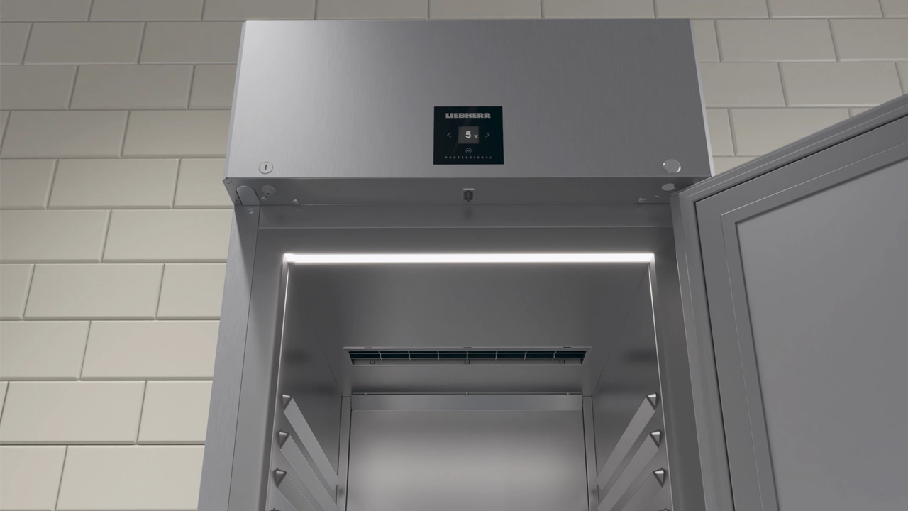 Olvídese de tener que descongelar con los electrodomésticos profesionales de Liebherr. La humedad generada se combate con la refrigeración asistida por ventilador, mientras que las fases de descongelación cíclicas eliminan las últimas partículas de humedad del interior. Para un almacenamiento cómodo, seguro y sin hielo.