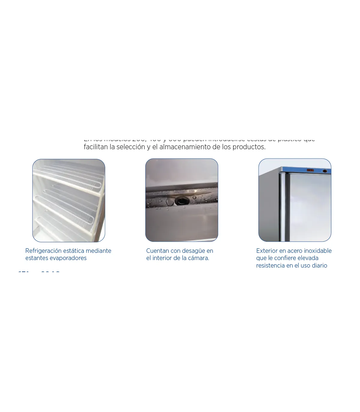 • En los modelos 200, 400 y 600 pueden introducirse cestas que facilitan la selección y el almacenamiento de los productos. Ver accesorios de armarios refrigerados.