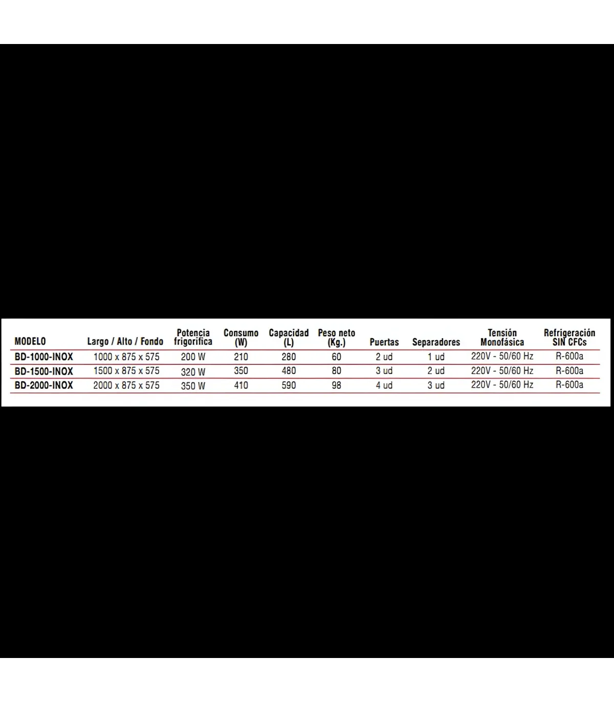 Botellero Subcero de 2 puertas 1020x545x840h mm