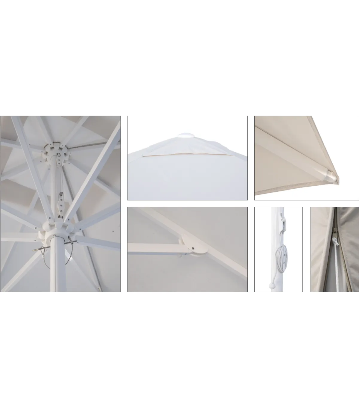 Parasol cuadrado 4x4 m de doble polea Garbar Sicilia Mástil de aluminio de ø 50 mm. Apertura mecanismo deslizante