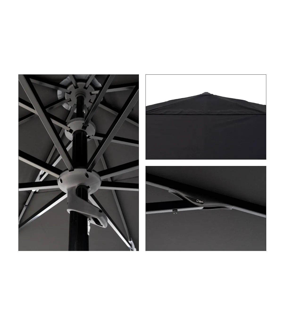 Tejido 100% Polyester 240 g/m2 en negro o marfil a escoger en opciones junto al color de la estructura de aluminio: cedro, blanco o negro